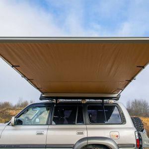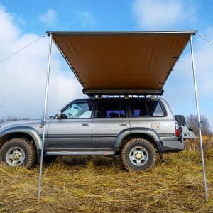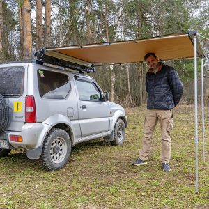 Описание Автомобильный тент-маркиза размером 1,4 х2 метра. Жестко крепится к кузову автомобиля или автомобильному багажнику, удобно и быстро разворачивается в походное положение. Отлично защищает от прямых солнечных лучей или атмосферных…